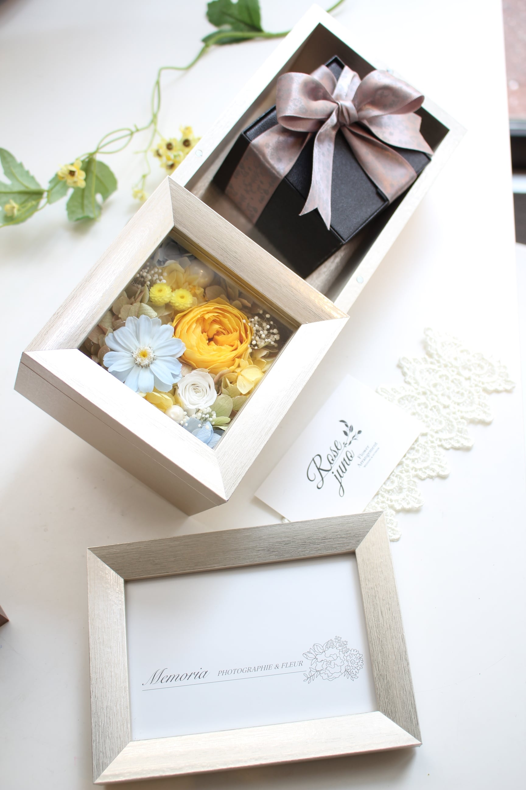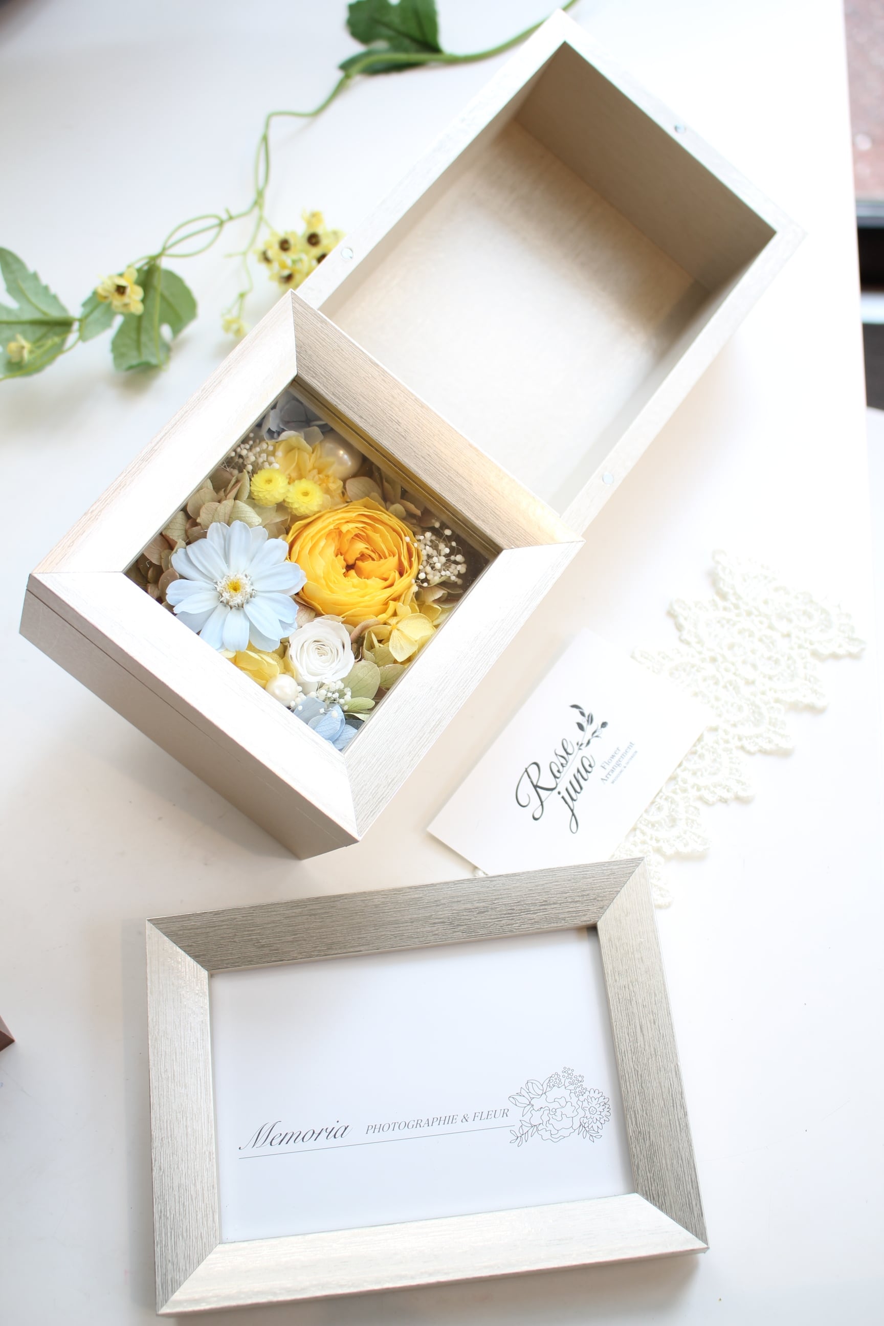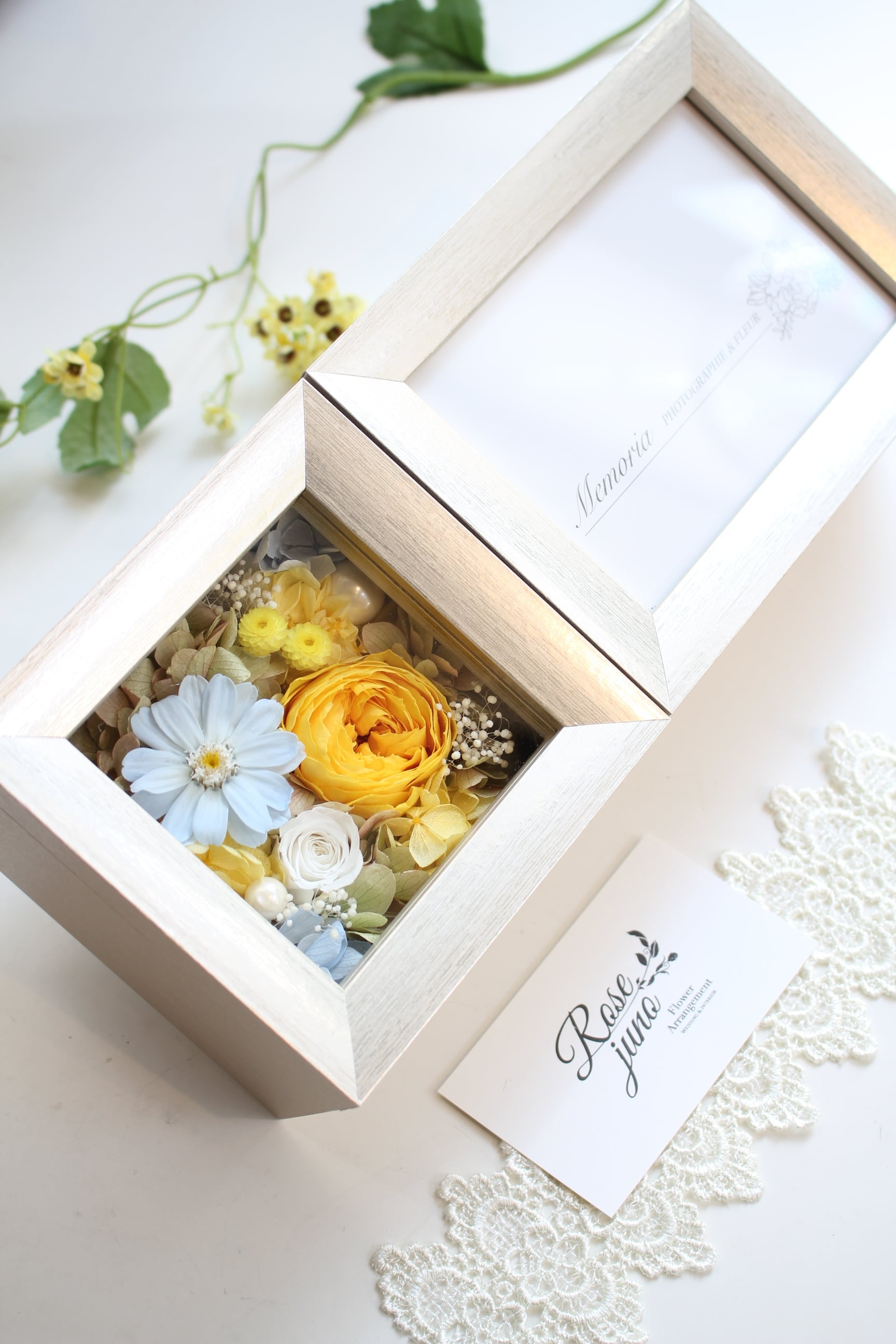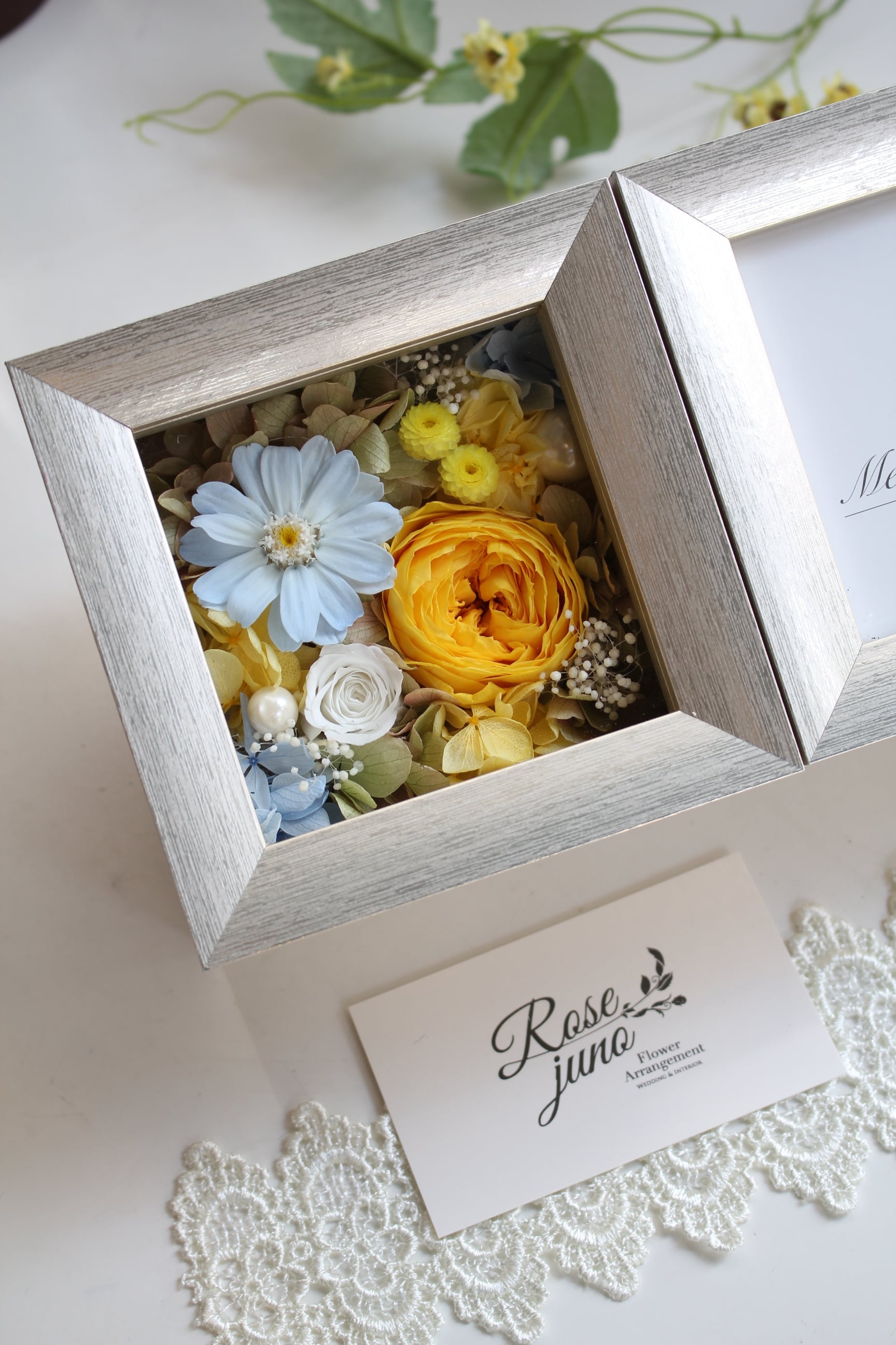 縦向き横向きどちらにも置いて頂けるフォトフレームアレンジメントです♪
