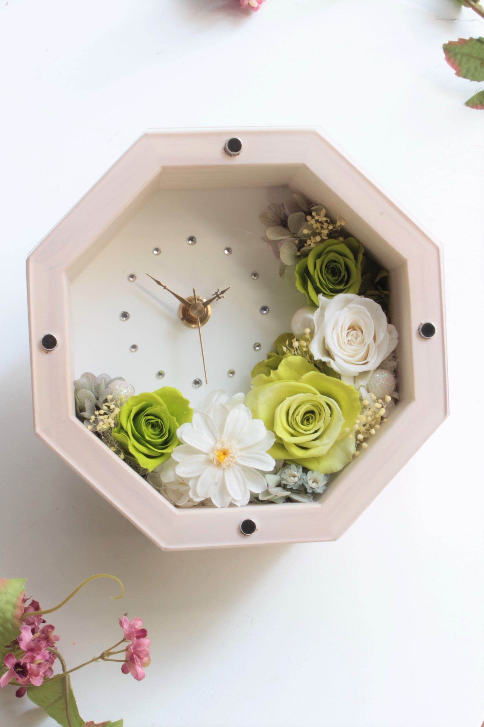 時間を見るたびに、プリザーブドフラワーで癒されます!